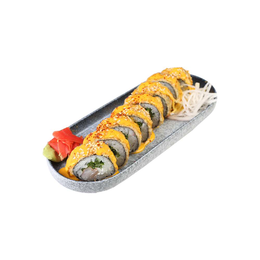 Ролл с креветкой, творожным сыром, чеддер сыром, кунжутом