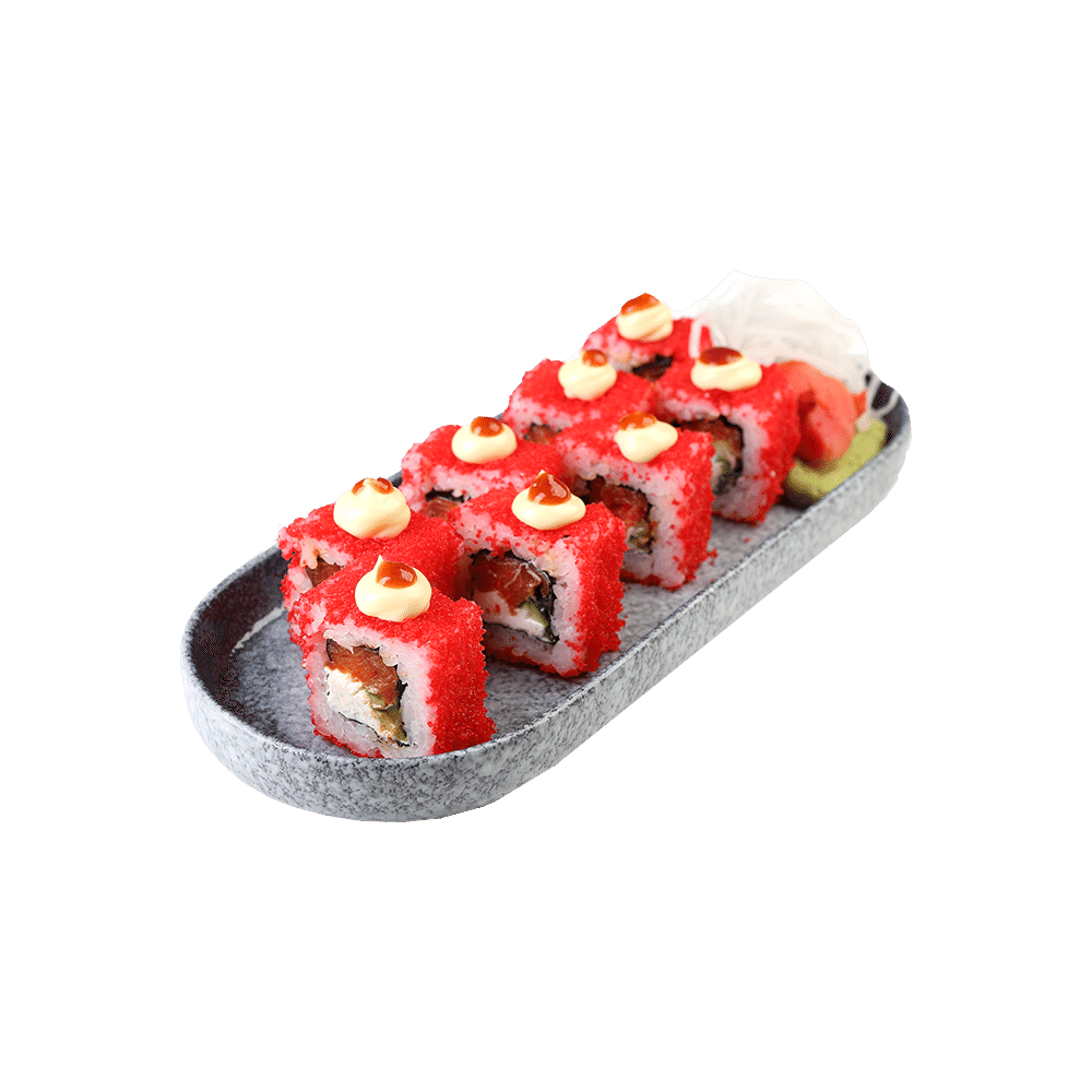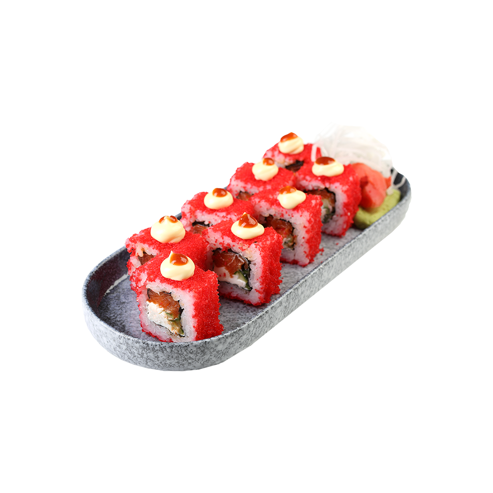 Ролл с лососем, огурцом, творожным сыром, японским майонезом