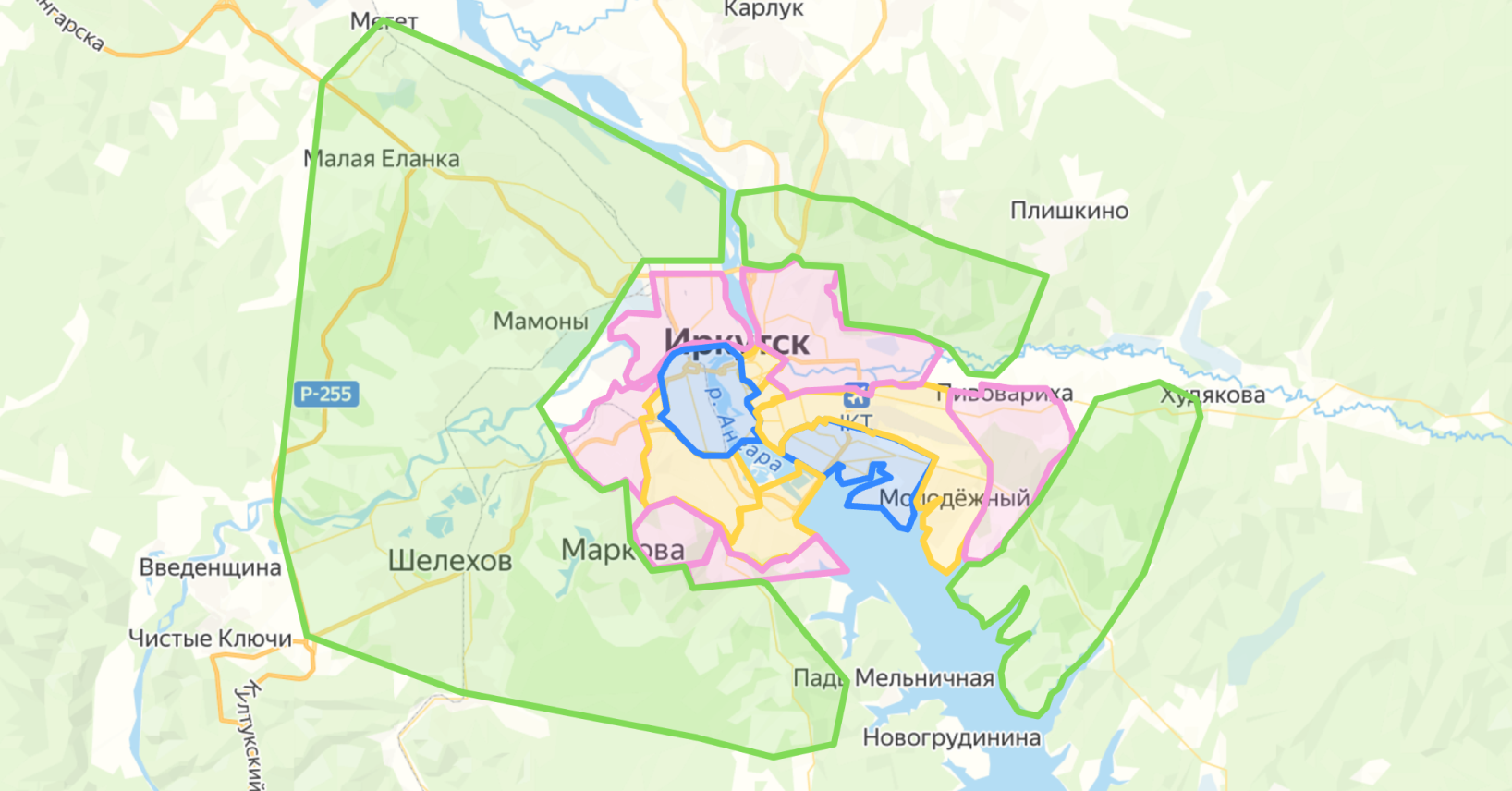 Желтая зона → Бесплатная доставка от 1500 рублей, время доставки до 90 минут.